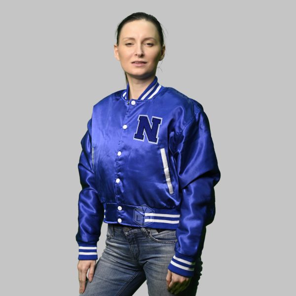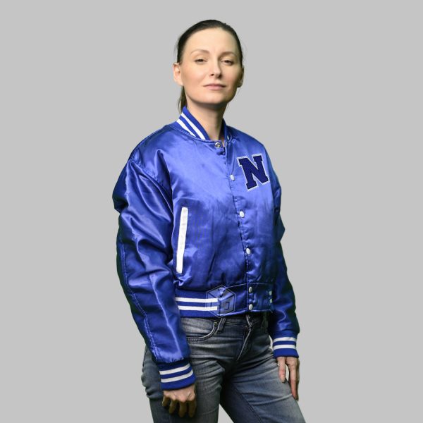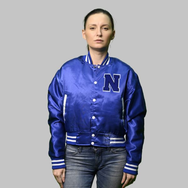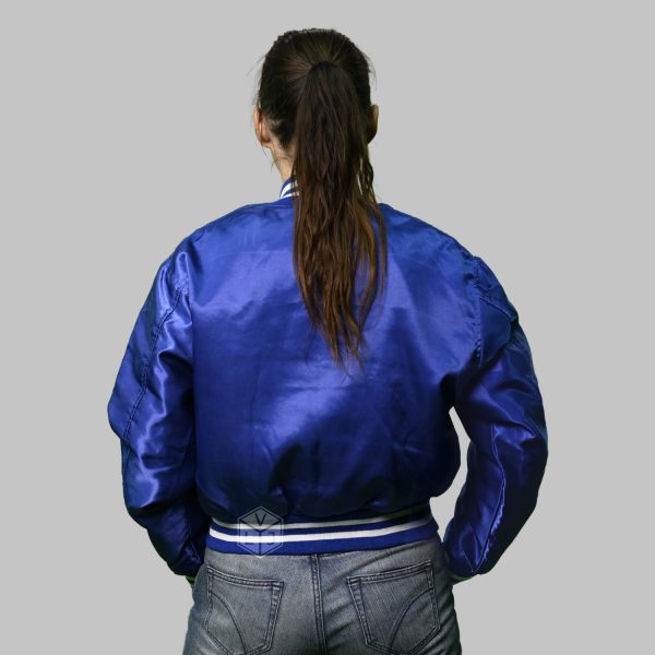 Custom Varsity Jackets is produced in the World’s best high-quality combination of materials, Polyester Satin short body and Sleeves in royal blue. Buy this varsity jacket for women as it is or you can design your jacket through our design tools.