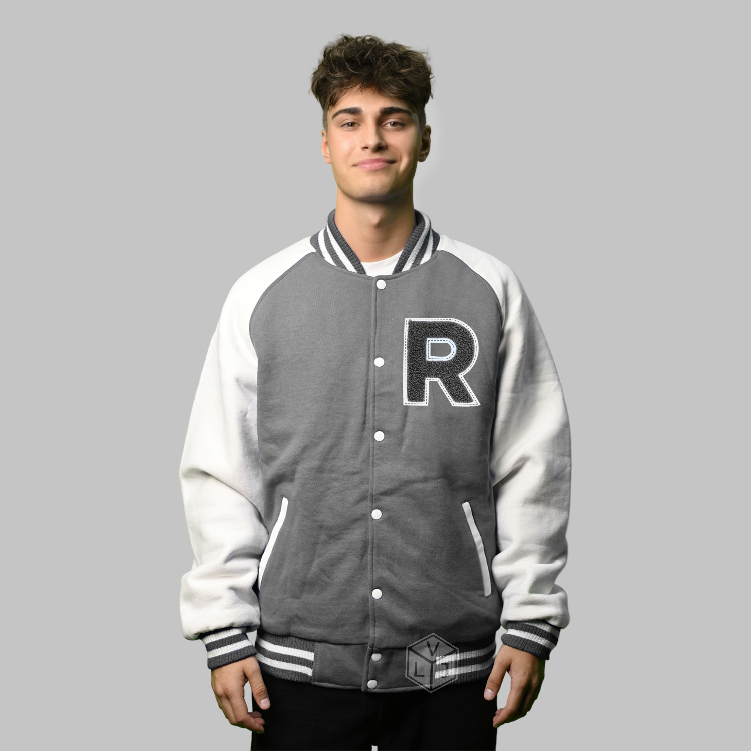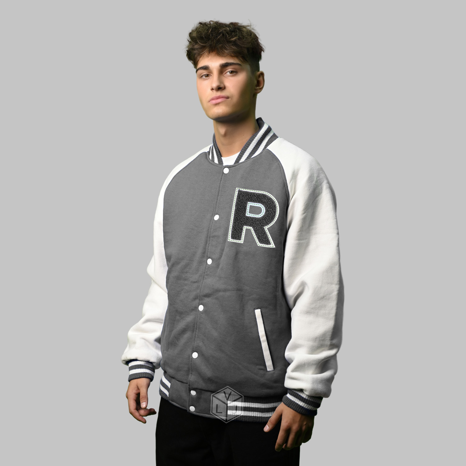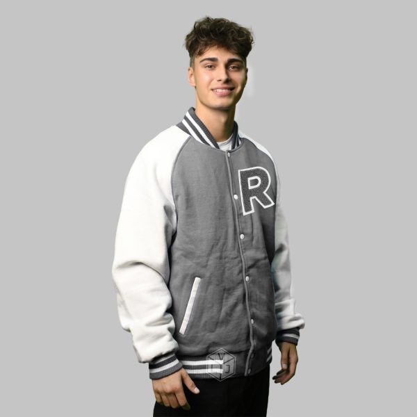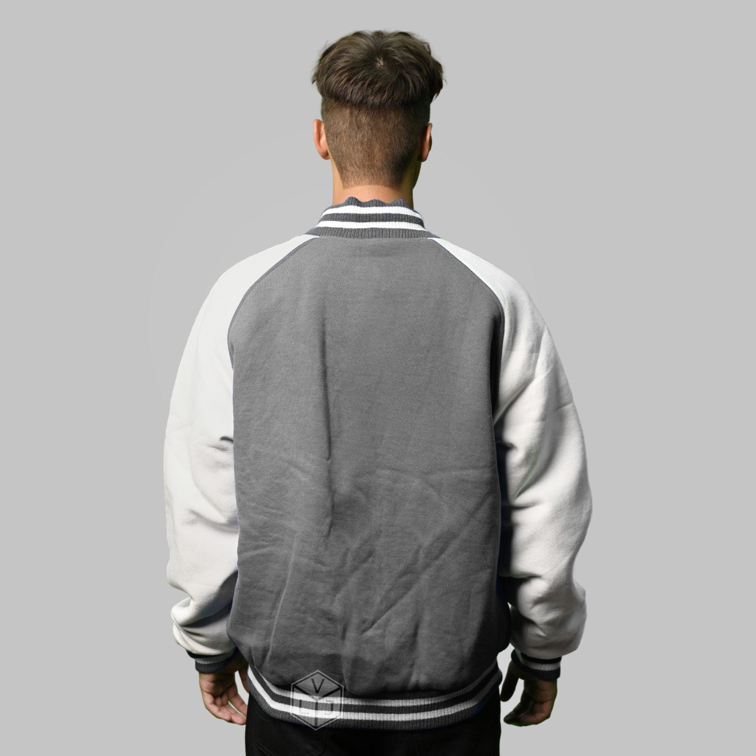 Custom Varsity Letterman jacket is produced in the World’s best high-quality combination of materials, Cotton Fleece body grey, and sleeves color in white. Buy this varsity jacket for men/women as it is or you can design your own jacket through our design tools.
