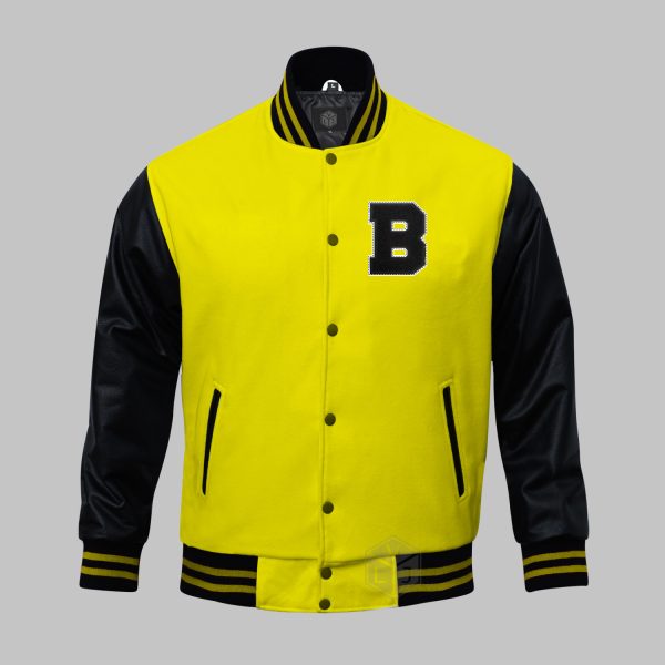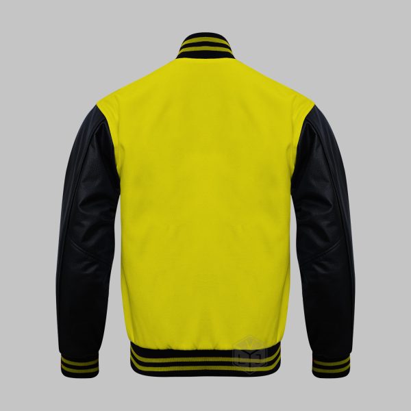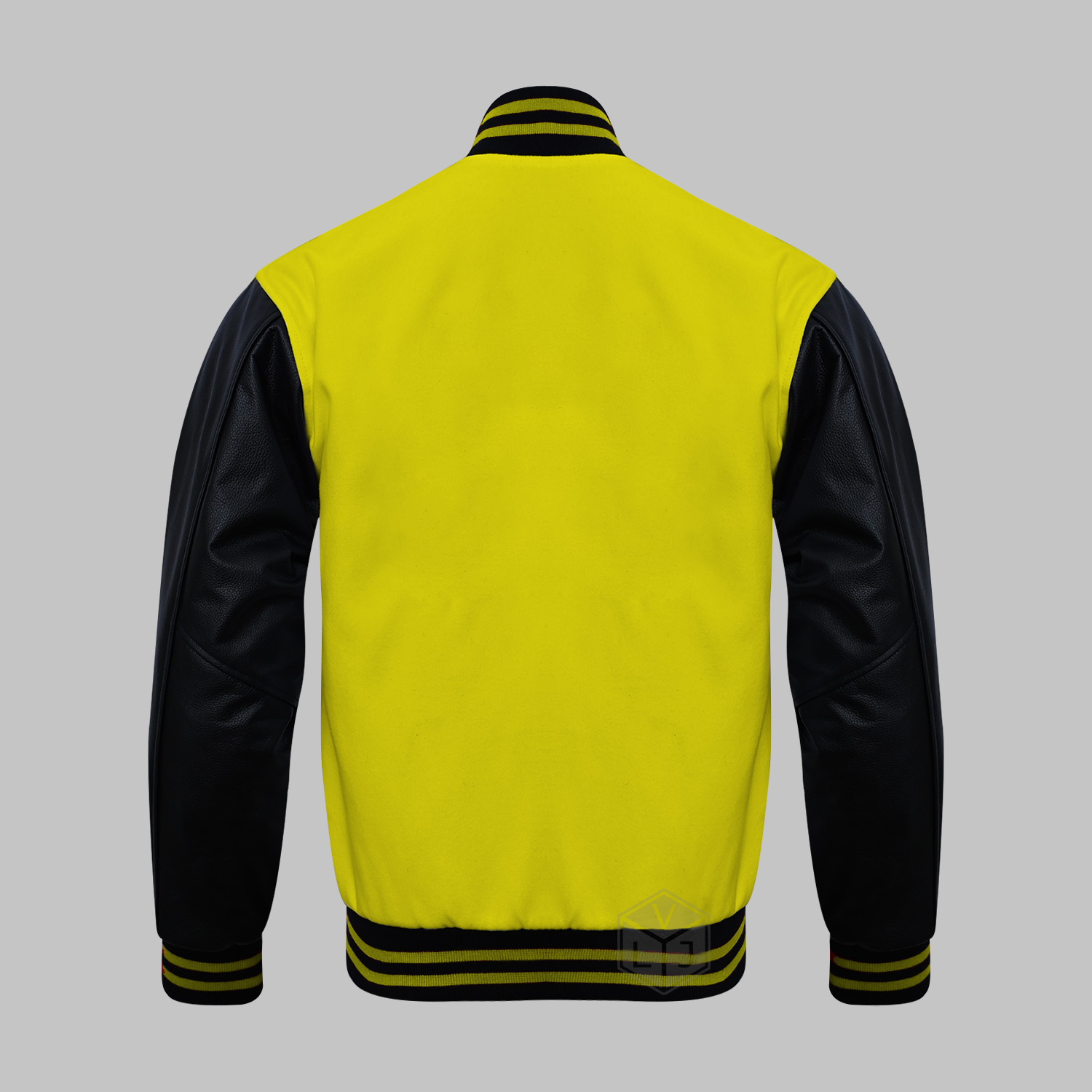 Make your own varsity jacket are produced in the World’s best high-quality combination of materials, wool body color yellow and sleeves color in black. Buy this varsity jacket for men & women as it is or you can design your own jacket through our design tools.