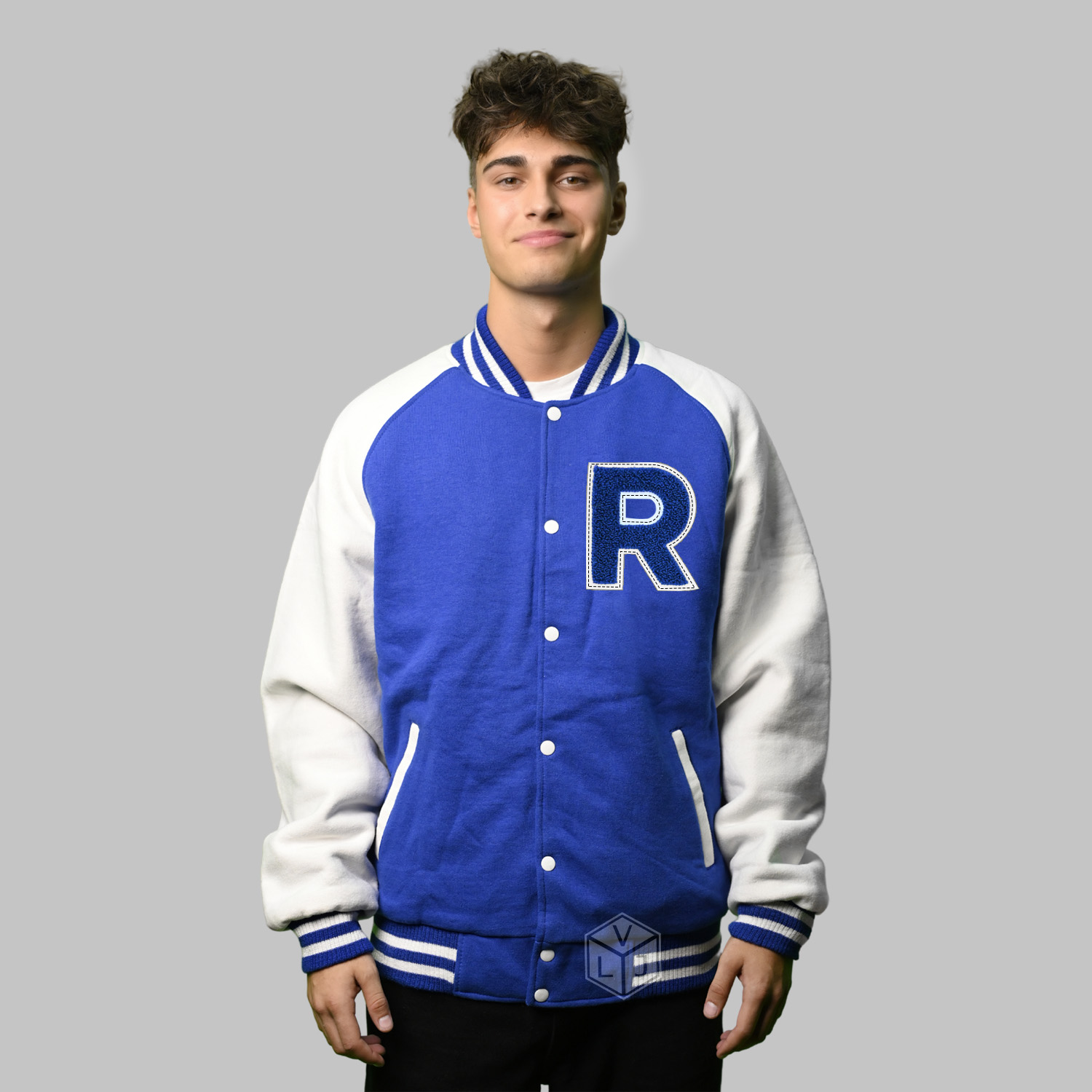 Men Letterman Jacket is produced in the World’s best high-quality combination of materials, Cotton Fleece body in royal blue, and sleeves color in white. Buy this varsity jacket for men/women as it is or you can design your own jacket through our design tools.