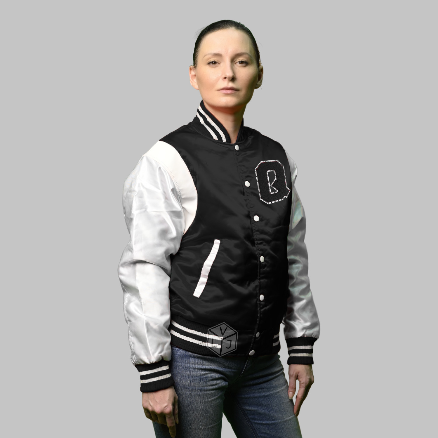 Satin Baseball Jackets are produced in the World’s best high-quality combination of materials, Polyester Satin body in black and Sleeves in white. Buy this varsity jacket for Men & Women as it is or you can design your jacket through our design tools.