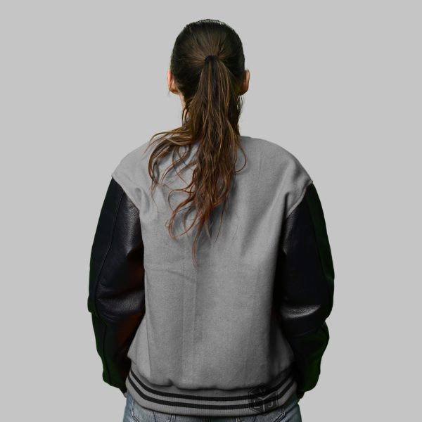 Varsity Jackets Wool Leather produced in World’s best high quality combination of materials, wool body color grey and sleeves color black. Buy this varsity jacket for women as it is or you can design your own jacket through our design tools.